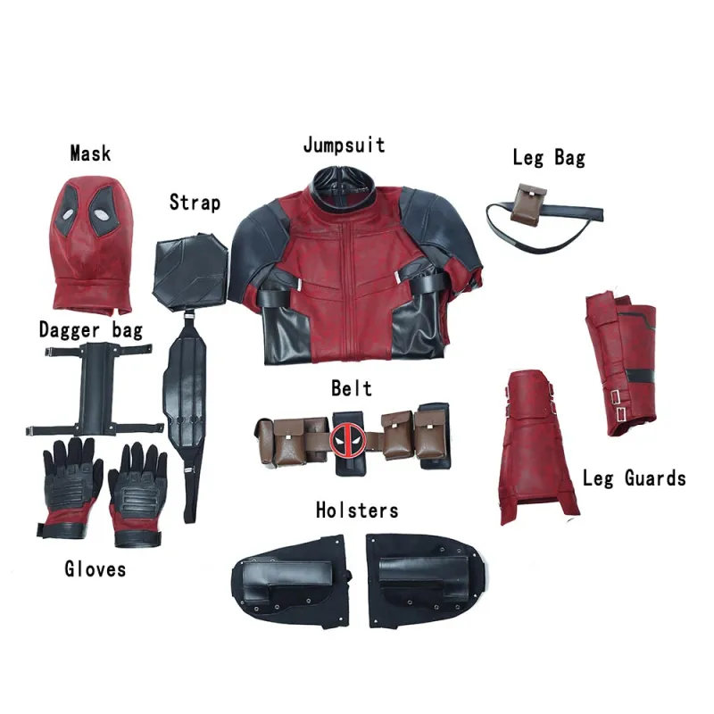 ★Package included: Jumpsuit, Mask, Strap, Gloves, Leg Bag, Dagger Bag, Belt, Leg Guards, Holsters. The shoes and knifies, guns are extra. If you need shoes, pls click here>>