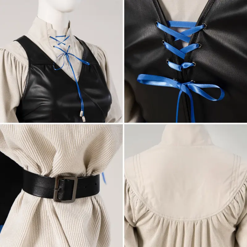 ★Components: Outerwear, dress, belt, glove, wrist guard, knee pads, leggings, shoe covers